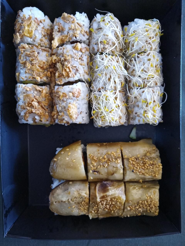 6 Californias tofu ail des ours pomme, carotte et choudoux marinée curcuma gingembre menthe, graine germée